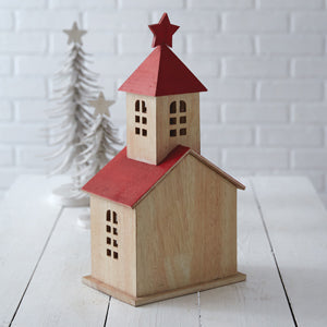Illuminate your walls with sparkling candlelight when you use this Schoolhouse Lantern. It will create the perfect ambience for Christmas Eve. Our lantern could be displayed in a centerpiece, alone, or with any of our other village luminaries. Item is made of wood. For safety, use with a battery operated tealight candle, not included. Insert candle through front opening which is 2½''W x 5''H.